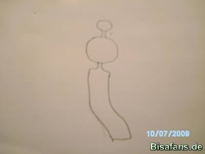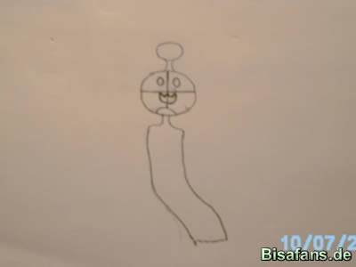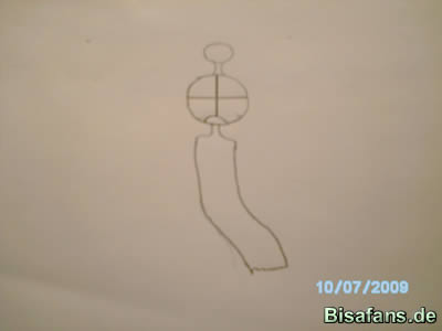 Jetzt malt ihr einen gebogenen Strich unten am Kopf und die Hilfslinien.