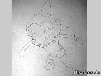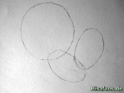 Jetzt kommen die ungefähren Details. Male oben an den große Kreis