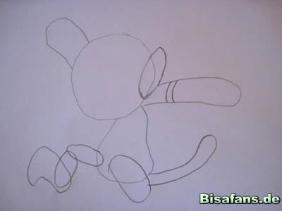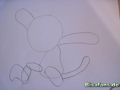 Als nächstes malt ihr den Schwanz. Bitte schließt ihn aber noch nicht an der Schwanzspitze!