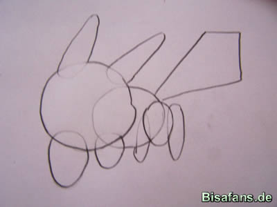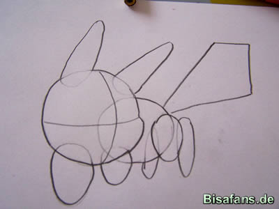 Vorderbeine zeichnen. Diese sind erst einmal Eier, wobei das linke