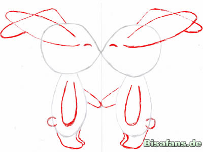 Zuerst eine liegende Acht, aber Vorsicht: Die Schnauzen sind etwas zugespitzt und der Hinterkopf ist abgeflacht.