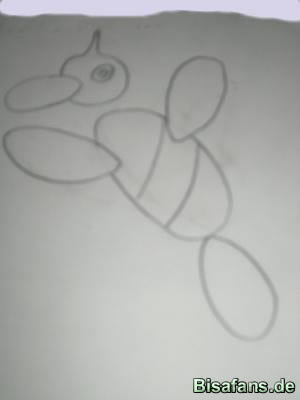 Grob noch mehr Ovale an, die Arme, Schnabel und Bein sein werden.