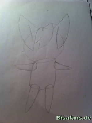 Zuerst zeichnet ihr den Kopf und den Körper
