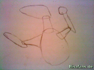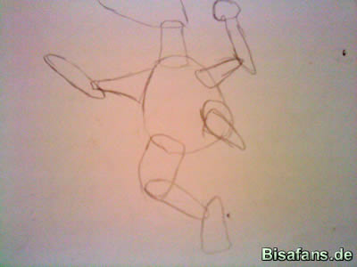 zeichnen. Wir fangen mit dem Kopf (leicht eckiges Oval), Körper