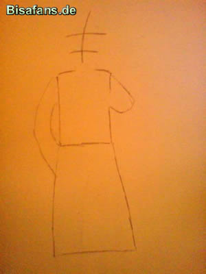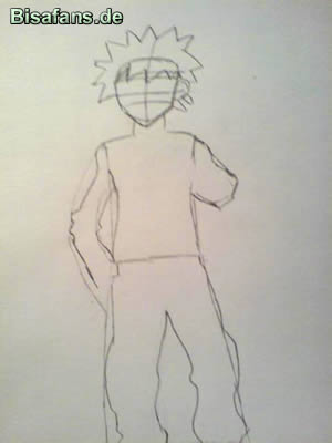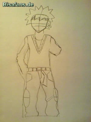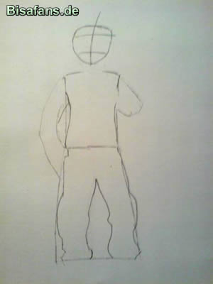 Nun zeichnet ihr Den Oberkörper, den Kopf und die Hose.