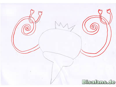>> Skelabra hat zwei gekringelte arm mit je 2 „Fingern“ aus denen später Flammen schießen.