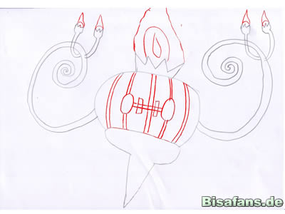 >> Zieht nun die Linien mit einem schwarzem Fineliner nach, malt Skelabra an, schattiert es, lasst die Flammen leuchten, und nun ist es FERTIG!