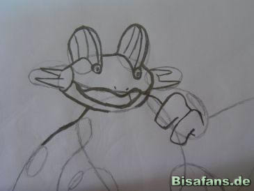 Nun zeichnen wir bei dem Kopf oben die zwei