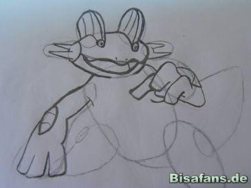 Flossen und die Spitzen an seinen Backen als Skizze. An den Armen