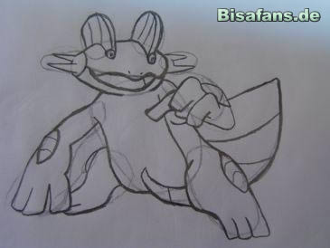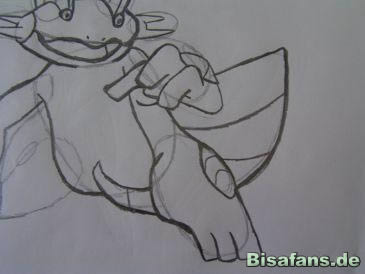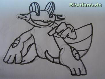 und Beinen die Panzer auftragen. Und noch seine Schwanzflosse.