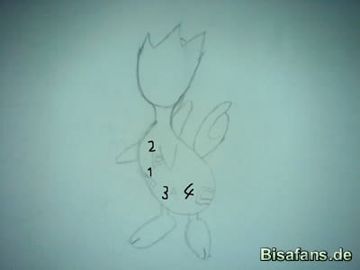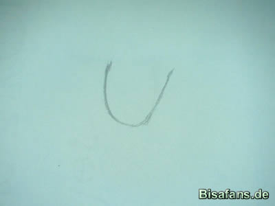 zwischen den zweiten und kleinen Strich für den hinteren Zacken.