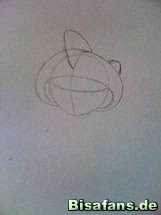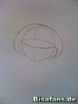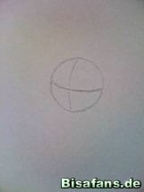 Aus erstes zeichnet man eine runde Kugel und ein bisschen schräg das Kreuz, so hat man schon einmal die Grundform des Kopfes.