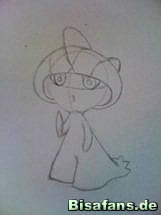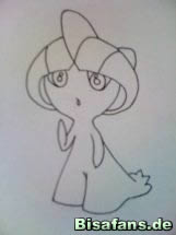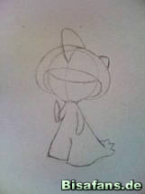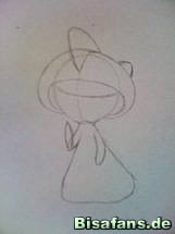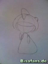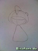Jetzt bringt man Trasla seine echte Körperform,in ca. der Mitte von dem "Klops" macht ihr den Strich der 2 Beine und hinten wird es etwas dünner.