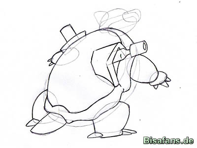 Pokémon-Zeichenkurs: Turtok (von vorne)