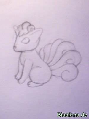 beginnt und in die Linie von Vulpix' Hintern übergeht. Die Beine