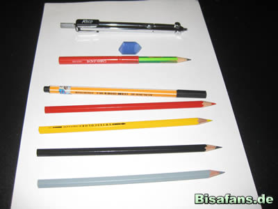 Zwirrfinst: Zirkel, Radiergummi, Bleistift, Fineliner(schwarz),