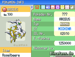 - Tipp der Game Master: Sollten dir die Statuswerte und das Wesen deines Arceus nicht gefallen, kannst du an dieser Stelle das Spiel ausschalten und dir Arceus noch einmal im Pokemon Markt abholen. Es wird dann andere Statuswerte haben. Mehr zum Wesen von Pokémon gibt es übrigens im Wesen-Spezial bei uns!