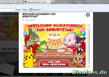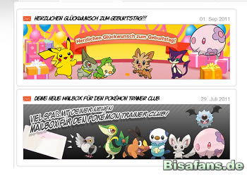 Das Postfach bei pokemon.com mit zwei Nachrichten. Die obere ist die