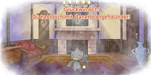 Nach der Eingabe des Passworts folgt ein kleines Suchspiel, bevor Banette auf den DreamWorld Account übertragen wird. Mit der nächsten Spielsynchro wird Banette dann auf den Spielstand von Pokémon Schwarz/Weiß übertragen und kann in der Kontaktebene abgeholt werden. Falls man auch bei der Traumeiche ein Pokémon erhalten haben sollte und beide mit einem Traumball fangen will, sollte man nach dem Fangen des ersten Pokémon in der Kontaktebene diese verlassen und erneut betreten. Dann bekommt man erneut einen Traumball ;)