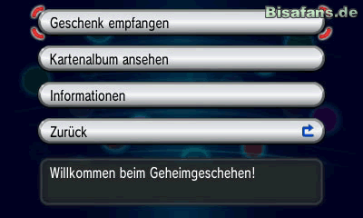 Wähle zuerst GEHEIMGESCHEHEN und dann GESCHENK EMPFANGEN.