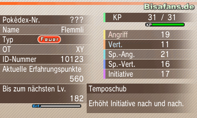 Pokédex-Einträge von Flemmli (oberer Bildschirm)