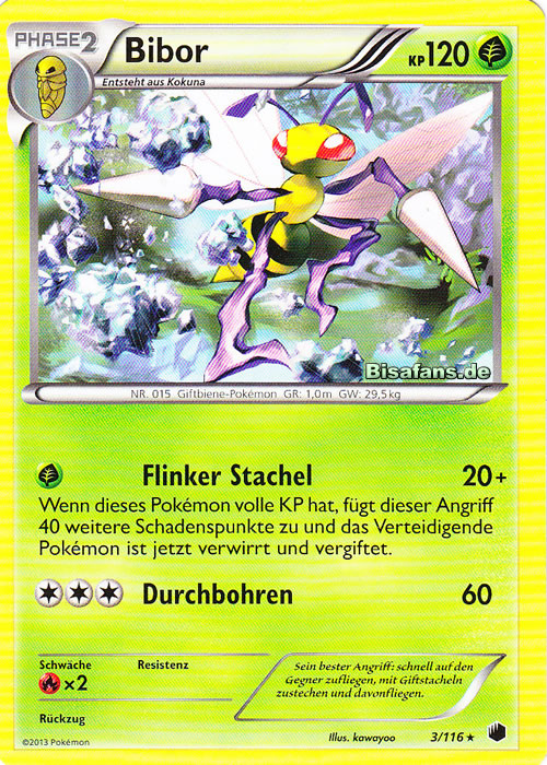 Mega-Bibor steht leider im Schatten von Schabelle, da es im Gegensatz zu diesem Eisstrahl nicht lernen und damit wichtige Ziele wie Demeteros und Skorgro nicht hart treffen kann und noch dazu den Mega-Slot einnimmt. Das defensive Typing ist aber gut genug, um gegen schwache Feen-Pokémon ohne Coverage reinzukommen und dank des Gifttyps kann es Giftspitzen entfernen. Kehrtwende generiert Momentum und Gifthieb rundet die Coverage ab. Am besten ergänzt man Bibor mit starken Eis- oder Wasserpokémon, die die Boden-Pokémon unter Druck setzen können, welche oft in Bibors Kehrtwenden eingewechselt werden. Ein frohes Wesen ist wichtig für Kapu-Riki, Mega-Gengar, Mega-Schlapor und Mega-Voltenso sowie den Speed Tie gegen Mega-Gewaldro. Schlagbohrer, um Heatran, Stalobor und andere Stahltypen zu treffen. Abschlag in Kombination mit Magnezone ist effektiv, um potenzielle Wechselhüllen von Panzaeron zu entfernen. Schwerttanz kann im Lategame beim Sweepen helfen bzw. Aggrostella auf +2 und mit etwas Vorschaden besiegen. Giftspitzen in Kombination mit Pokémon wie Delegator-Zygarde oder -Suicune, die es mögen, wenn bspw. Tangoloss vergiftet wurde, und Nadelrakete kann mit etwas Glück zu einem von Anpassung geboosteten 125 Base Power STAB zu werden, der Fokusgurt-Träger wie Farbeagle auf dem falschen Fuß erwischen kann. Auch Stachelfinale ist denkbar, wodurch man möglicherweise einen +3-Boost abgreifen kann, allerdings haben offensive Teams in der Regel zu viele Möglichkeiten, ein geboostetes Bibor zu revengekillen, während man gegen defensive Teams kaum Chancen hat, den Boost überhaupt zu bekommen - daher ist Schwerttanz als Boostattacke zuverlässiger.