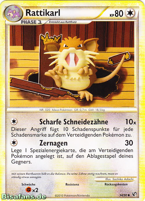 - Rattikarl ist das einzige Pokémon, dessen Nationaldexnummer 20 mit dem Level der Entwicklung übereinstimmt.