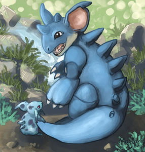- LGPLGE Nidoqueen besitzt einen robusten Körper, der von harten Schuppen bedeckt ist. Diese scheinen immer wieder nachzuwachsen.