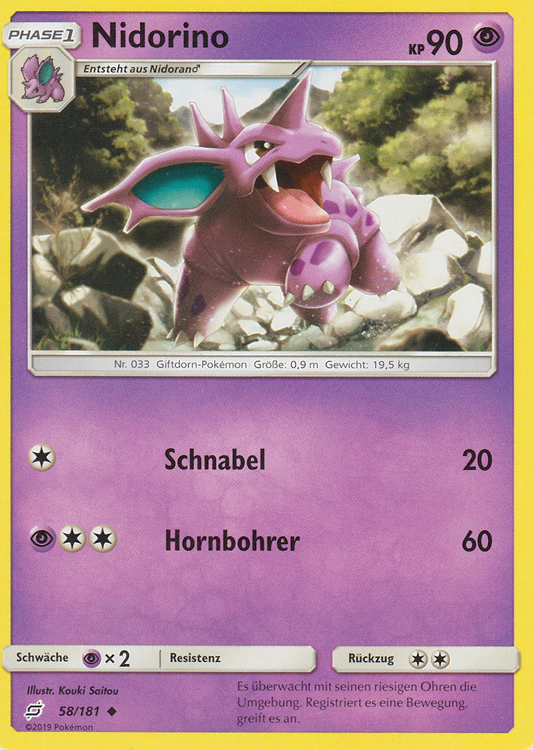 - S Das Horn dieses Pokémon ist hart wie ein Diamant. Im Kampf stößt es damit kräftig zu und schädigt den Gegner mit starkem Gift.