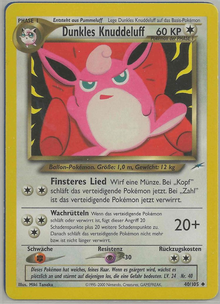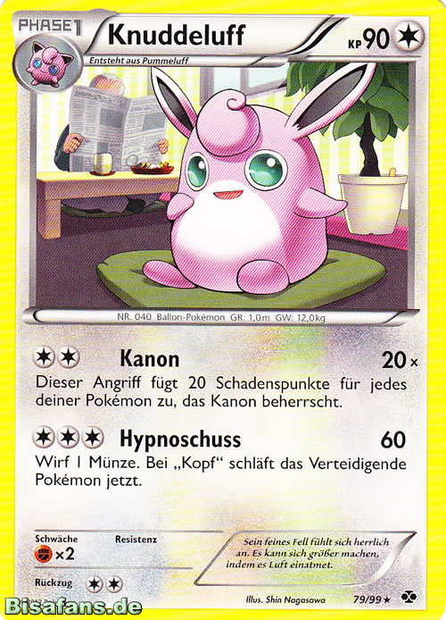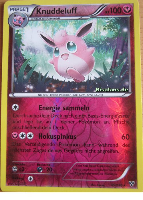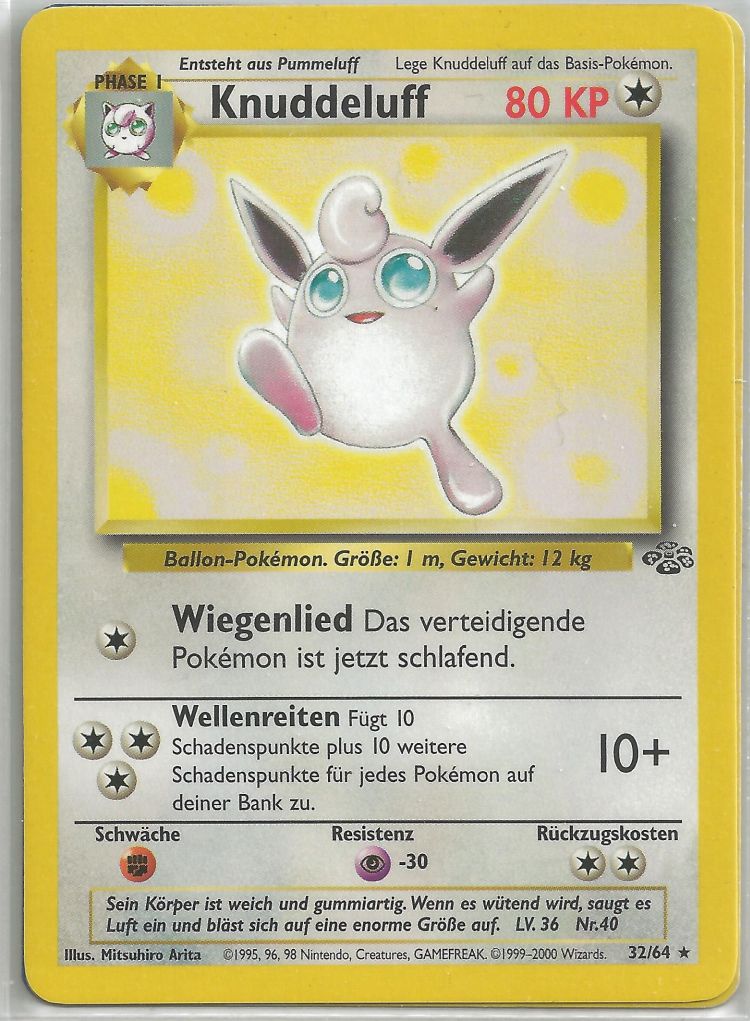 - R KNUDDELUFF hat handtellergroße Augen, die immer mit Tränenflüssigkeit bedeckt sind. Gerät Staub in die Augen dieses POKéMON, so wird dieser sofort ausgespült.
