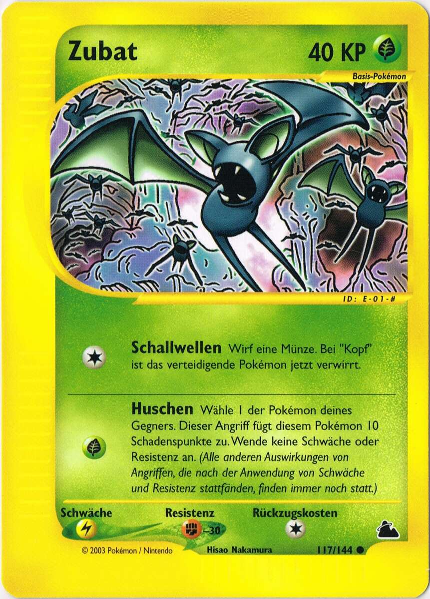 - G Dieses Pokémon stößt während des Fluges Ultraschalllaute aus, um Hindernisse zu orten.