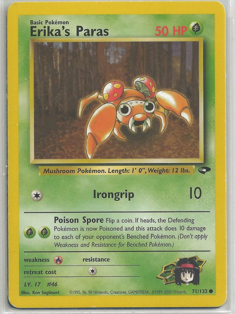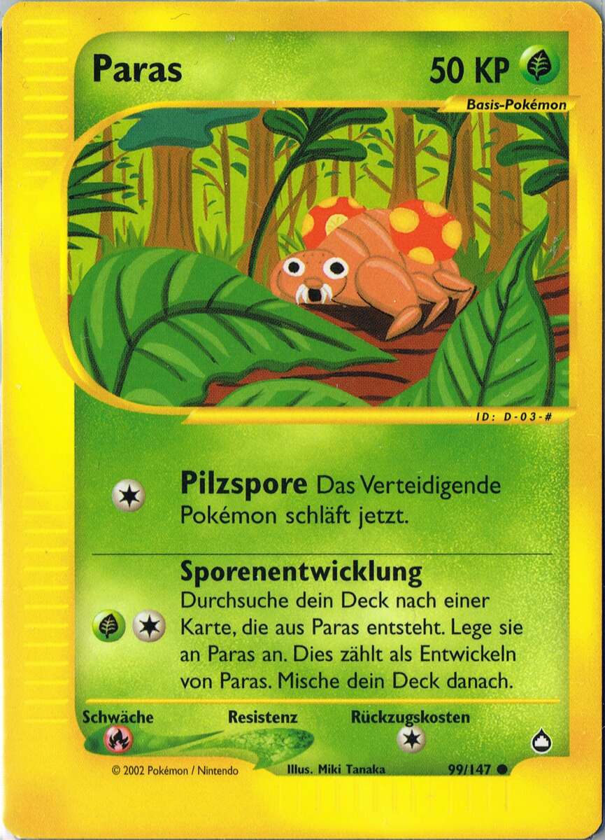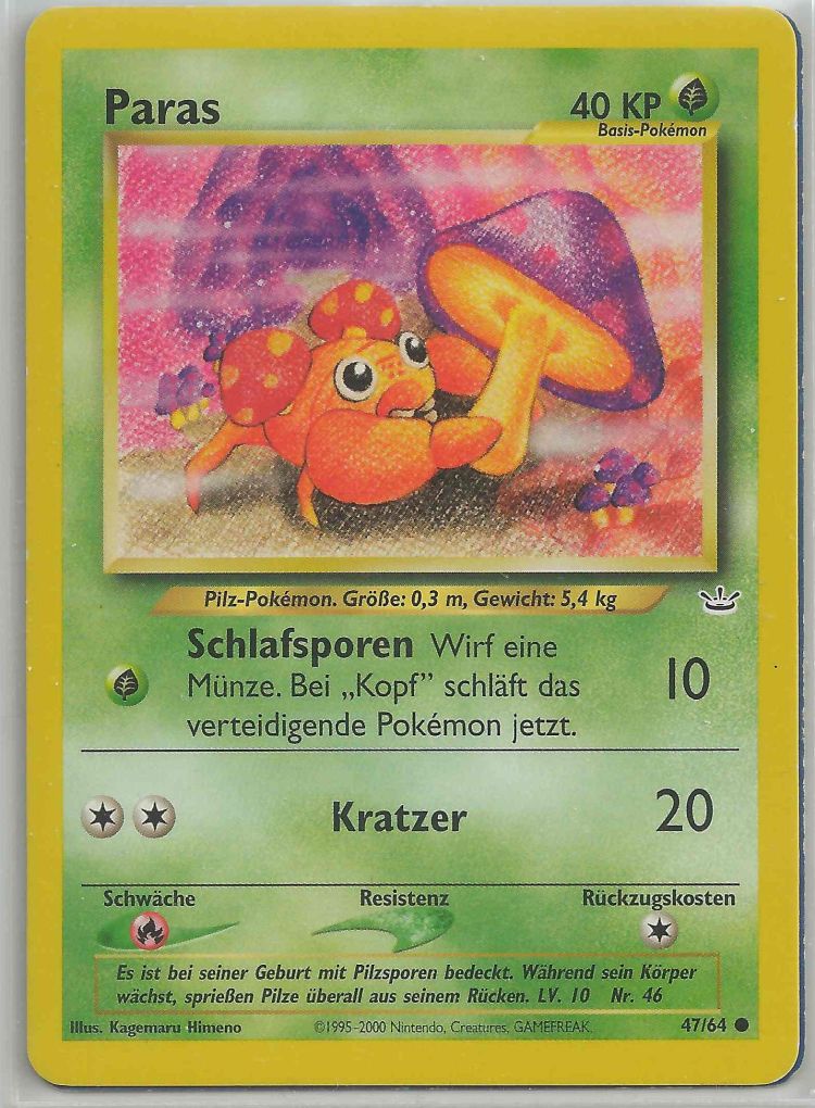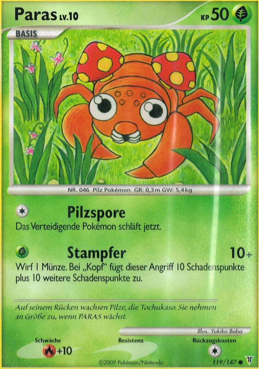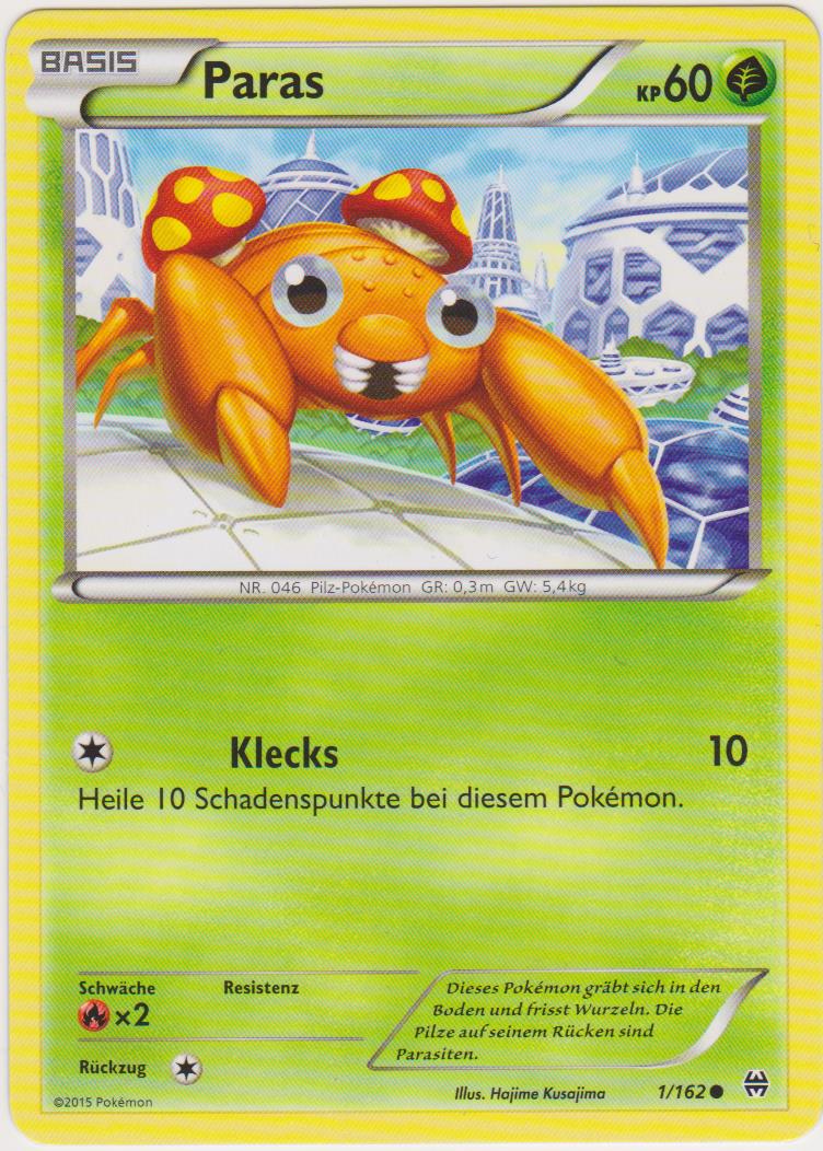- RS Auf PARAS' Rücken wachsen parasitäre Pilze, die Tochukaso genannt werden. Sie wachsen, indem sie dem KÄFER/PFLANZEN-PKMN Nährstoffe entziehen. Sie sind sehr wertvoll als lebensverlängernde Medizin.