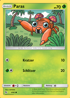 - US In Alola sind Paras’ Pilze etwas unterentwickelt. Vielleicht mangelt es ihm hier an Feuchtigkeit oder Nährstoffen.