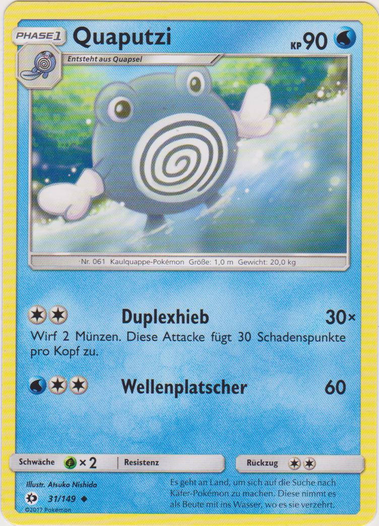 - S Dieses Pokémon kann sowohl an Land als auch im Wasser leben. Damit sein Körper an Land nicht austrocknet, schwitzt es ihn naß.