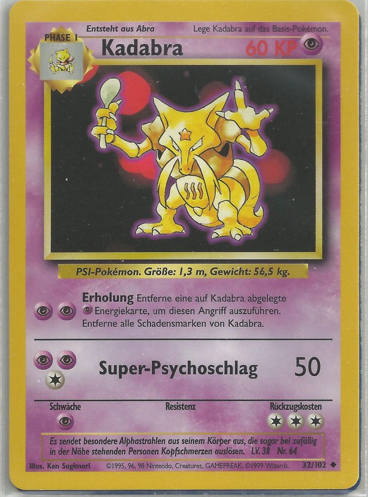 - OR Kadabra sendet Alphawellen aus, wenn es Kopfschmerzen hat. Nur wer eine besonders starke Psyche hat, kann dieses Pokémon unter seine Fittiche nehmen.