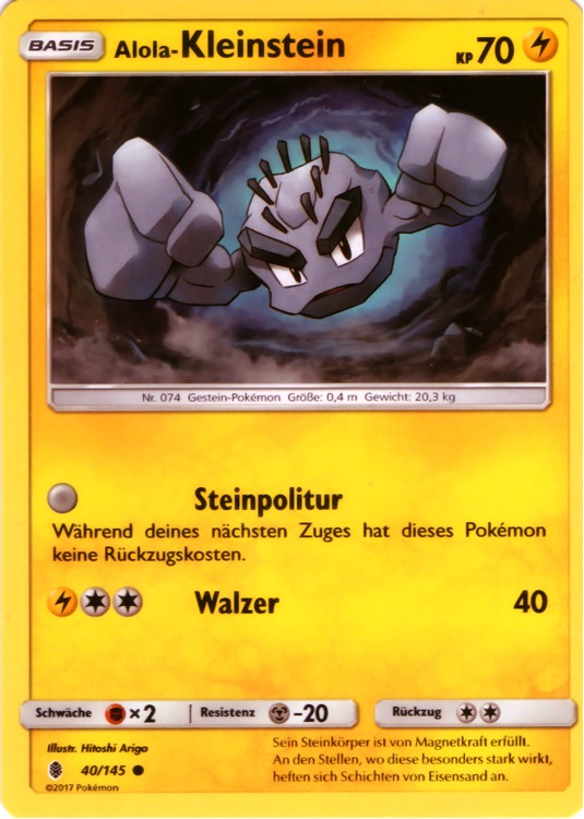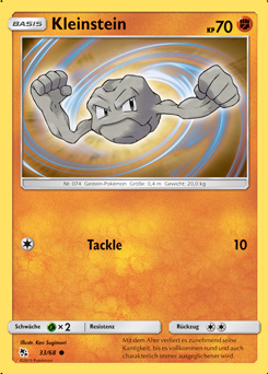 - S Dieses Pokémon kann sich mit seinen starken Armen über kleinere Hindernisse heben. Die meiste Zeit rollt es jedoch herum.