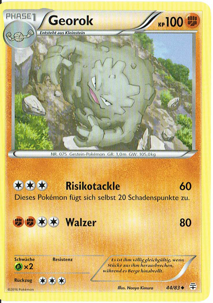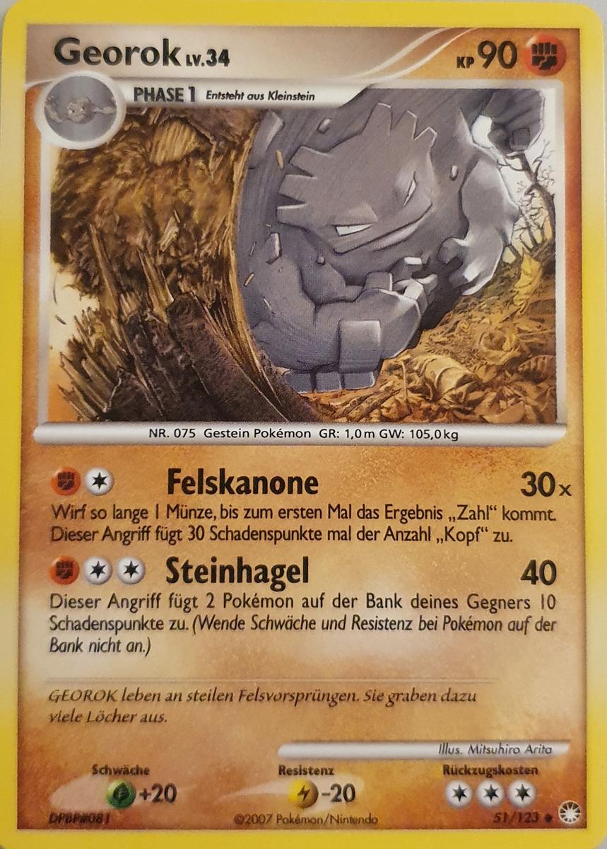 - AS Steine sind Georoks Lieblingsspeise. Dieses Pokémon klettert vom Fuße eines Berges zu seinem Gipfel empor und zermalmt dabei das Gestein. Wenn es den Gipfel erreicht hat, rollt es wieder herunter.