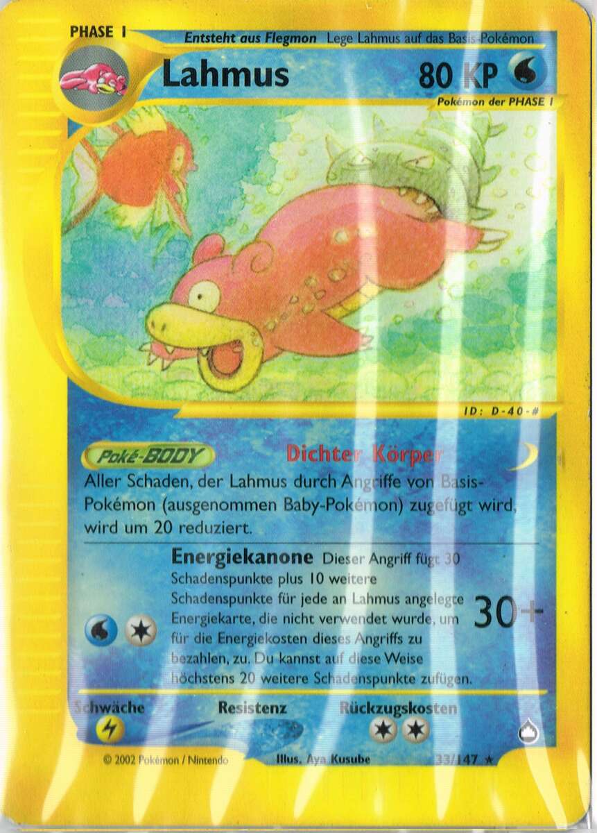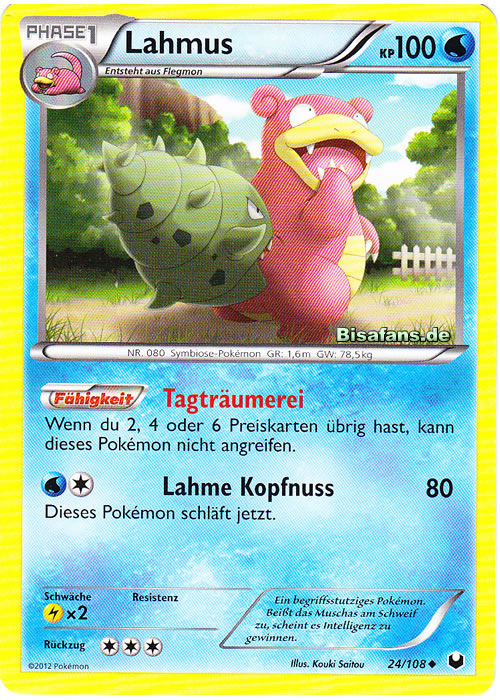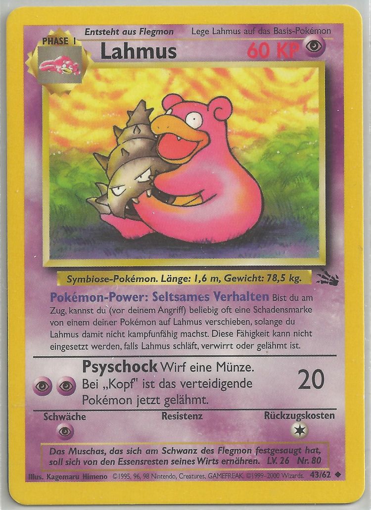 - RB Am Schwanz dieses Pokémon hat sich ein Muschas festgesaugt. Lahmus fungiert für ihn als Wirt.