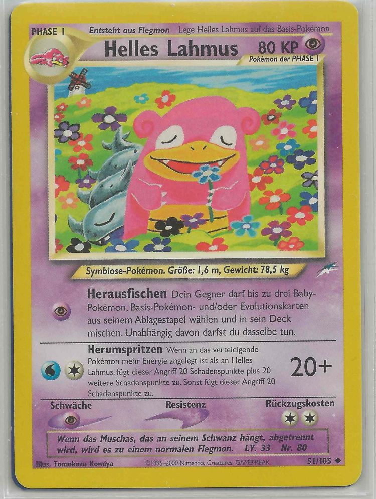 - US Ein von Grund auf begriffsstutziges Pokémon. Verliert es seine Rute mitsamt Muschas, entwickelt es sich zu Flegmon zurück.