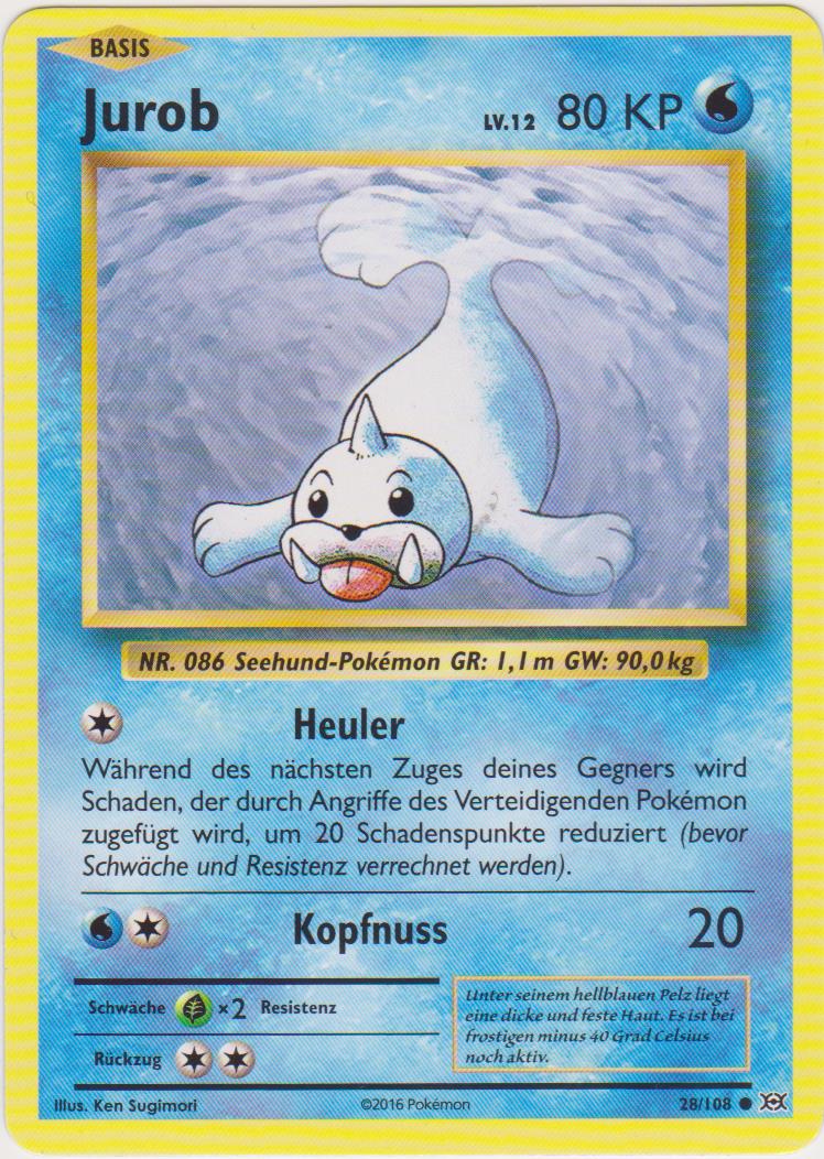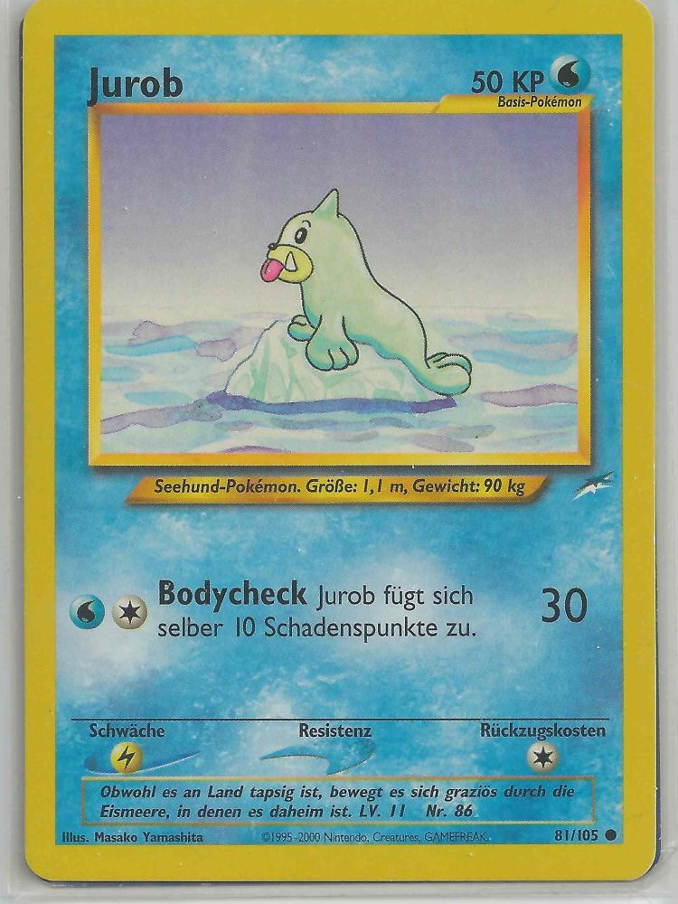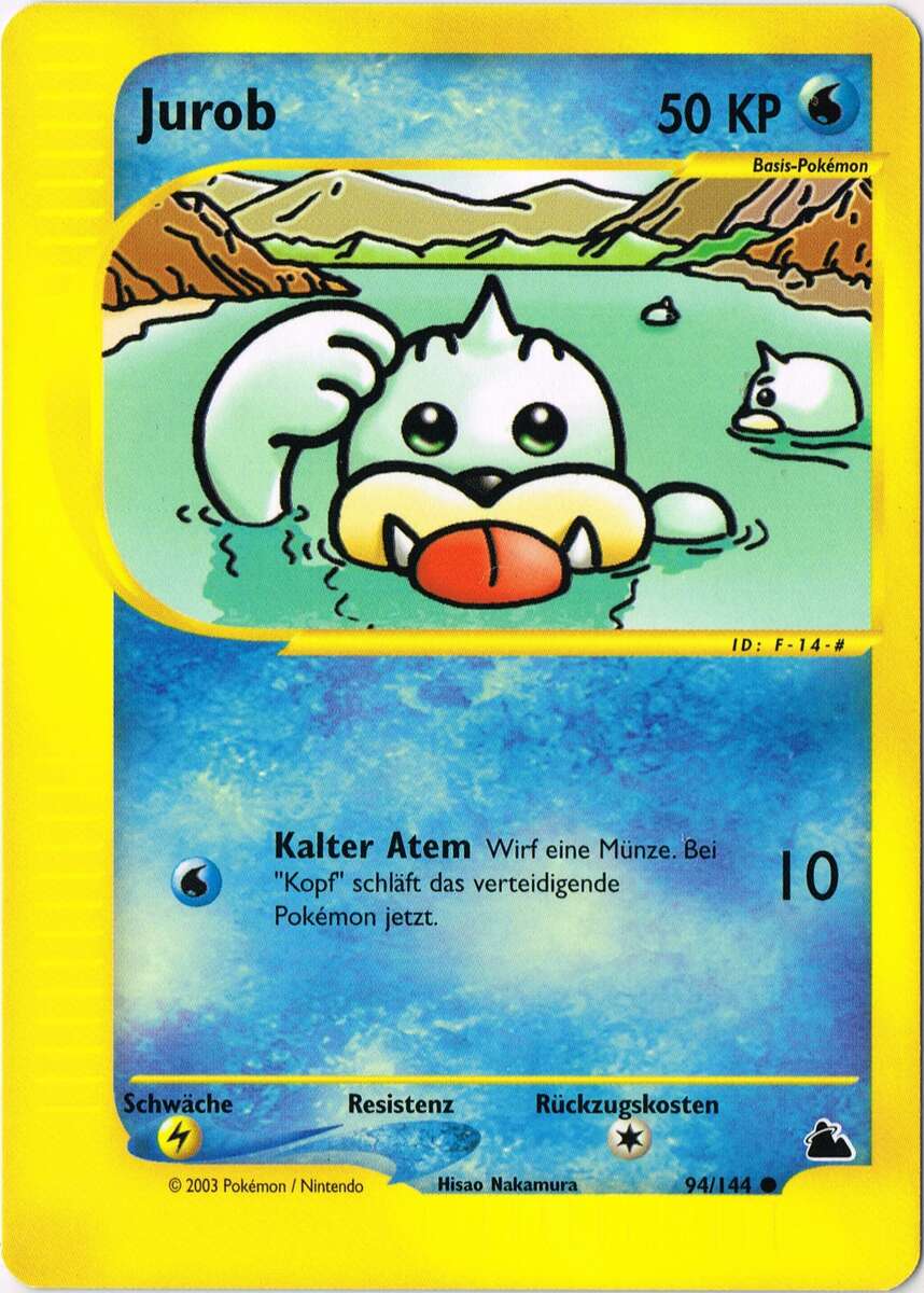 - S Das Fell dieses Pokémon schimmert bläulich. JUROB kann Eisschichten durchstoßen und schwimmt sogar in -40 Grad kaltem Wasser.