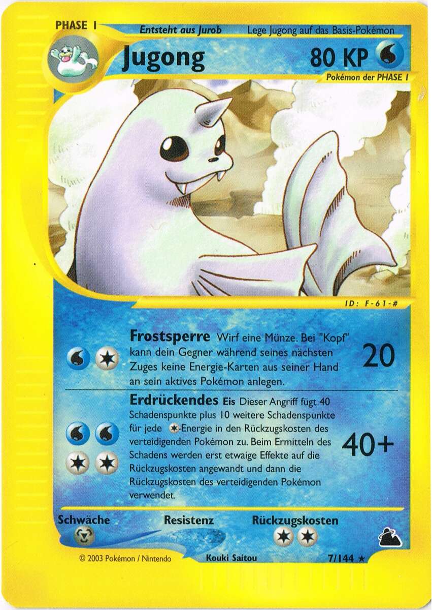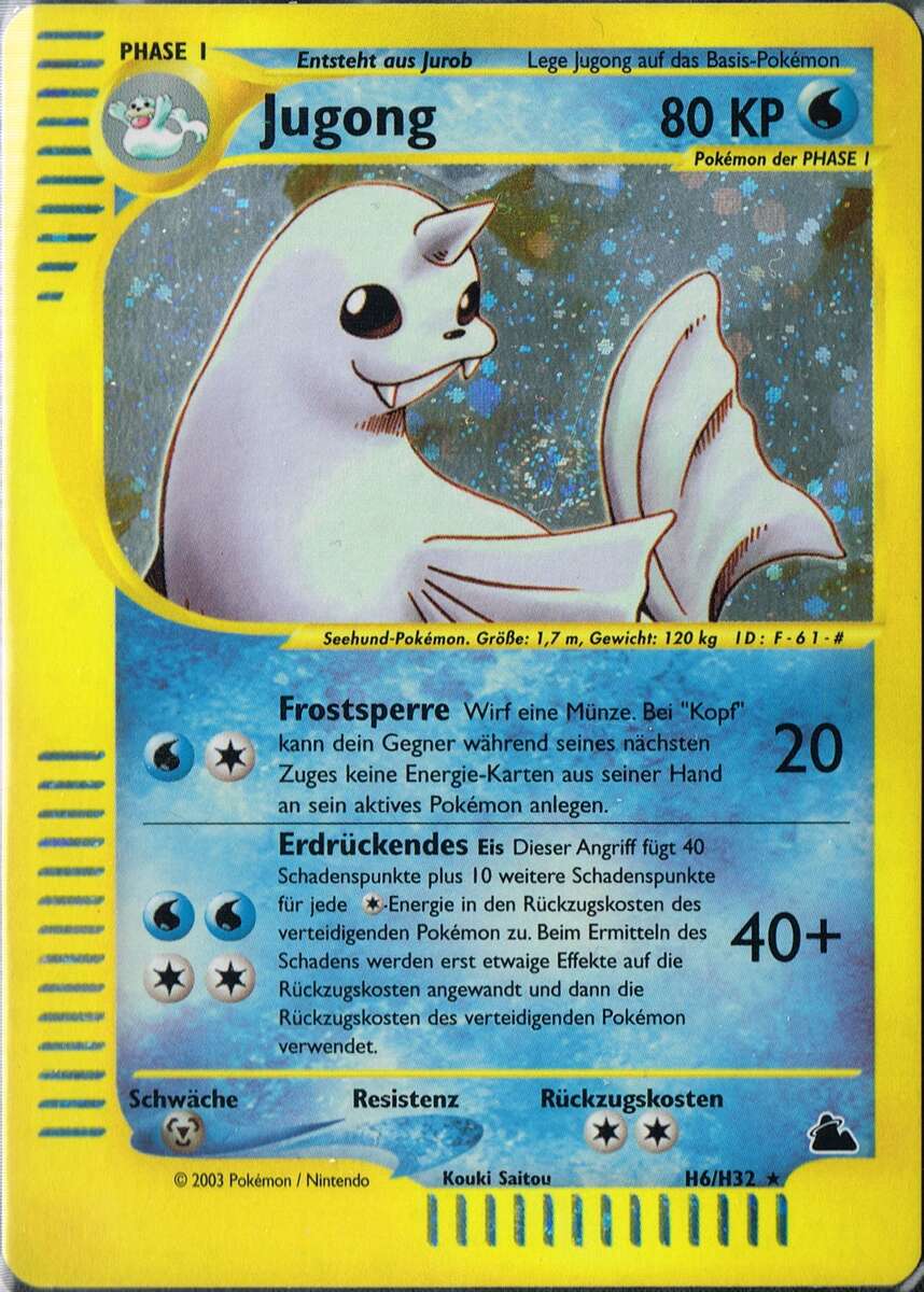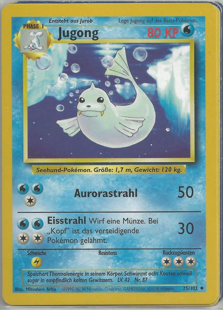 - AS Jugong liebt es, auf bitterkalten Eisschollen ein Nickerchen zu machen. Ein Seemann, der ein solches Pokémon eines Tages auf einem Eisberg schlafen sah, hielt es für eine Meerjungfrau.