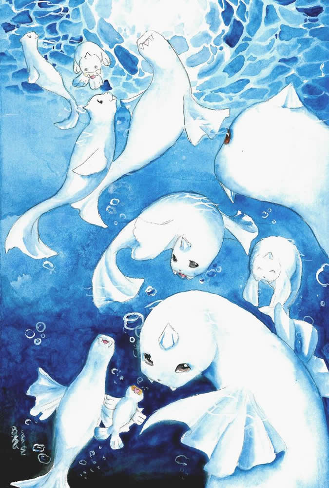 - LGPLGE Sein ganzer Körper ist schneeweiß. Da ihm Kälte nichts ausmacht, kann es selbst in Eiswasser kraftvoll schwimmen.