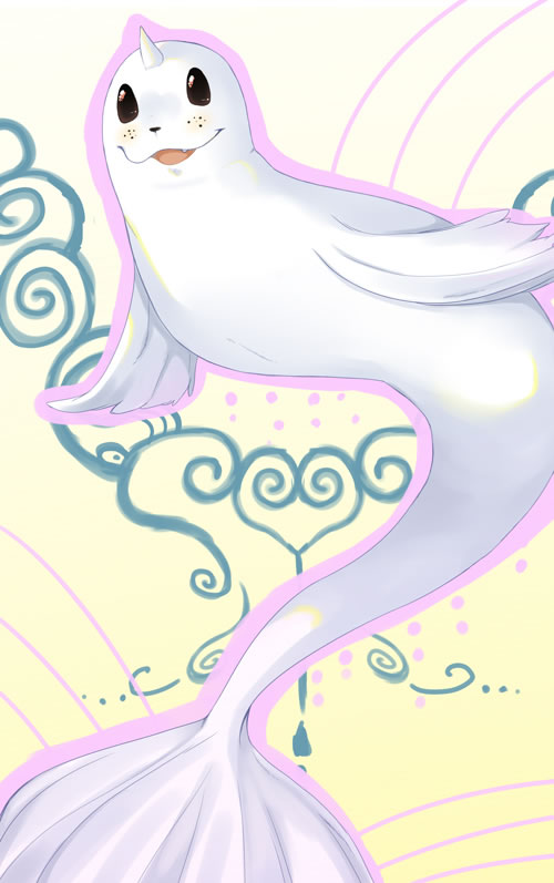 - S Dieses Pokémon kann in seinem schneeweißen Fell Wärme speichern. Es erreicht selbst in Eiswasser eine Geschwindigkeit von 8 Knoten.