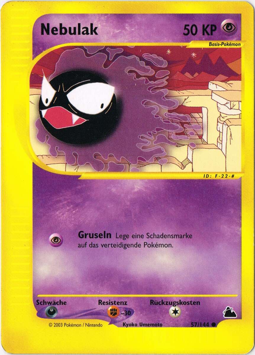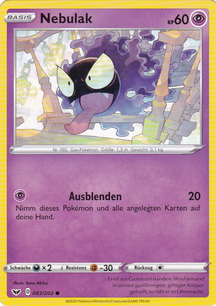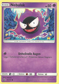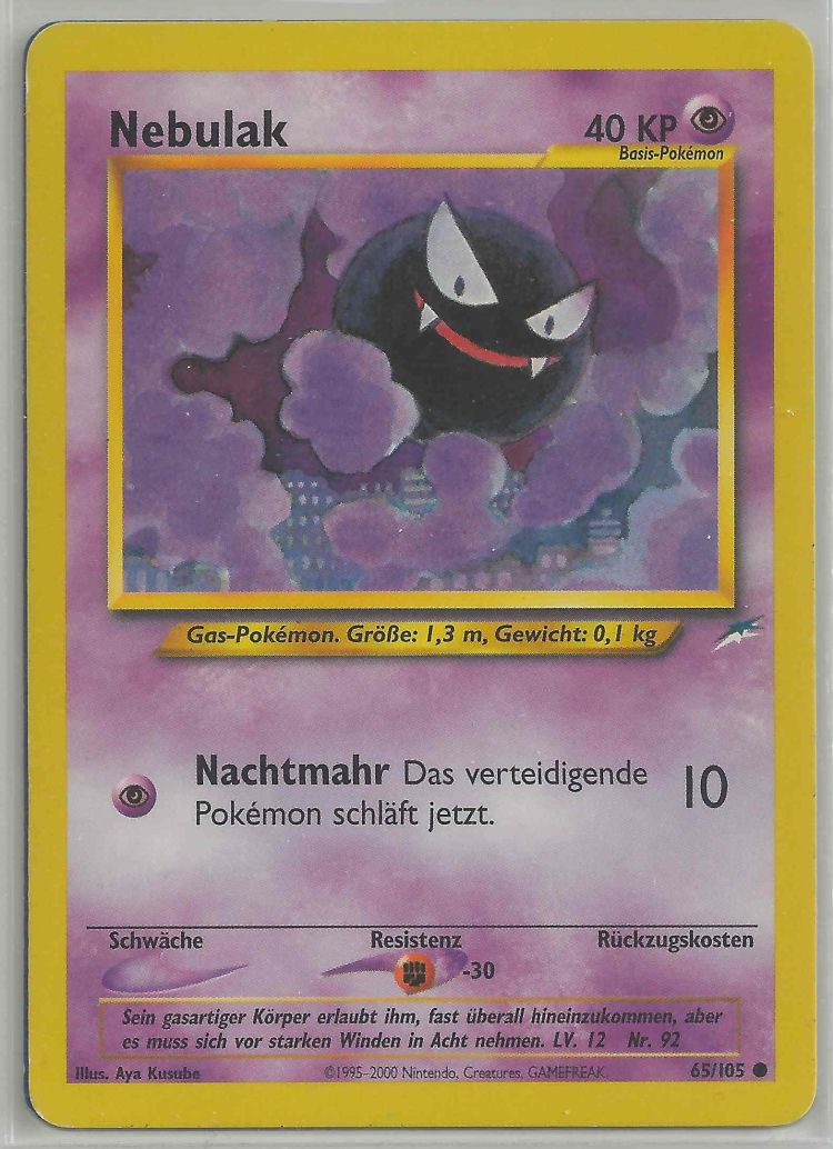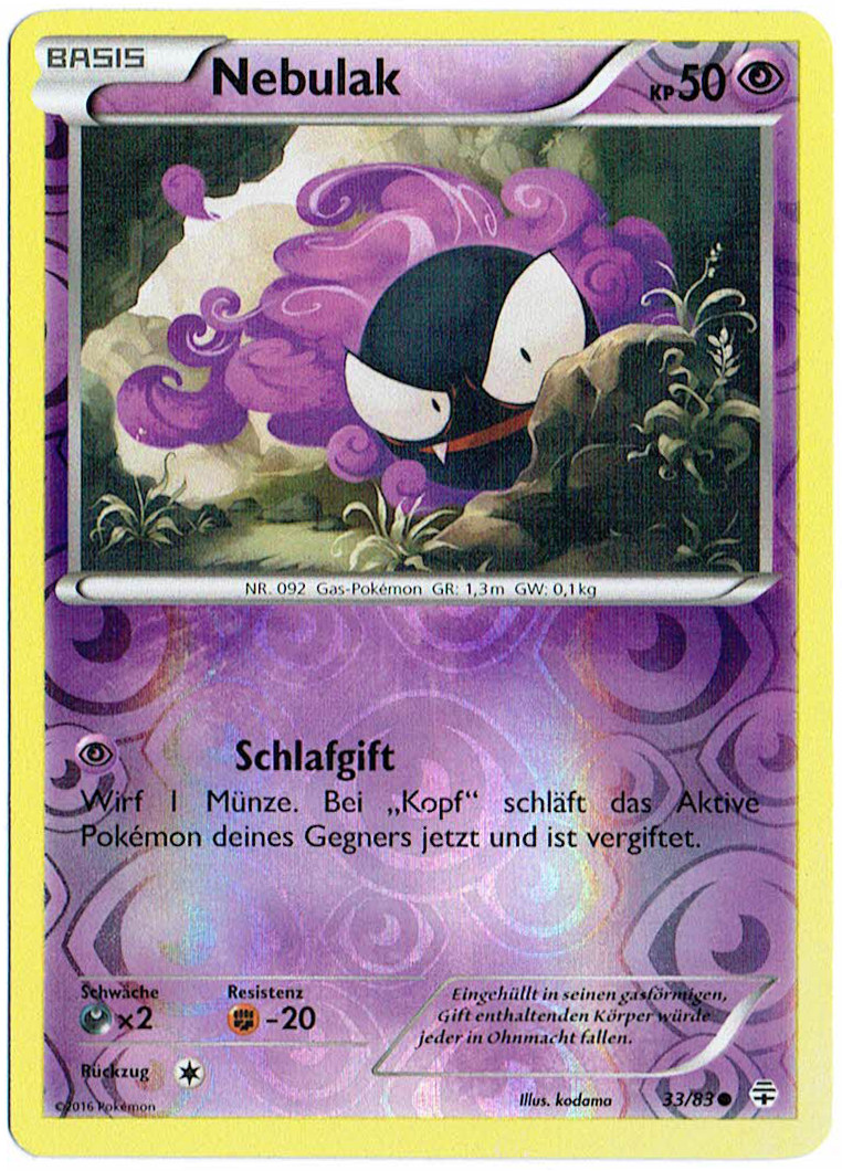 - K Es umwickelt seine Feinde mit seinem Gaskörper und schwächt sie, indem es langsam Gift injiziert. RUSA NEBULAK hat einen gasförmigen Körper. Wenn es starkem Wind ausgesetzt wird, kann es davongeweht werden. Scharen dieses POKéMON sammeln sich unter Dachrinnen, um sich vor dem gefährlichen Wind zu schützen.