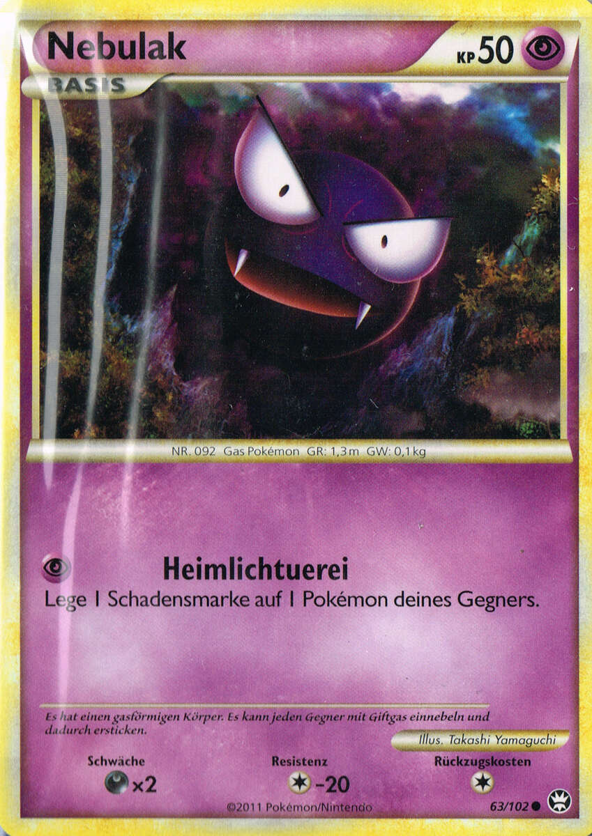 - BG Dieses nahezu unsichtbare POKéMON hüllt den Gegner unbemerkt ein und versetzt ihn in Tiefschlaf.