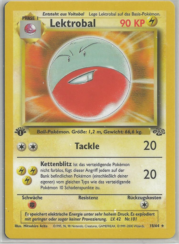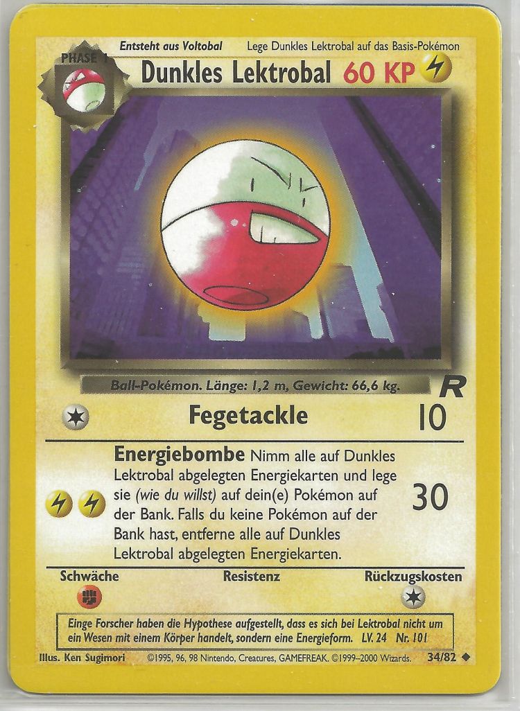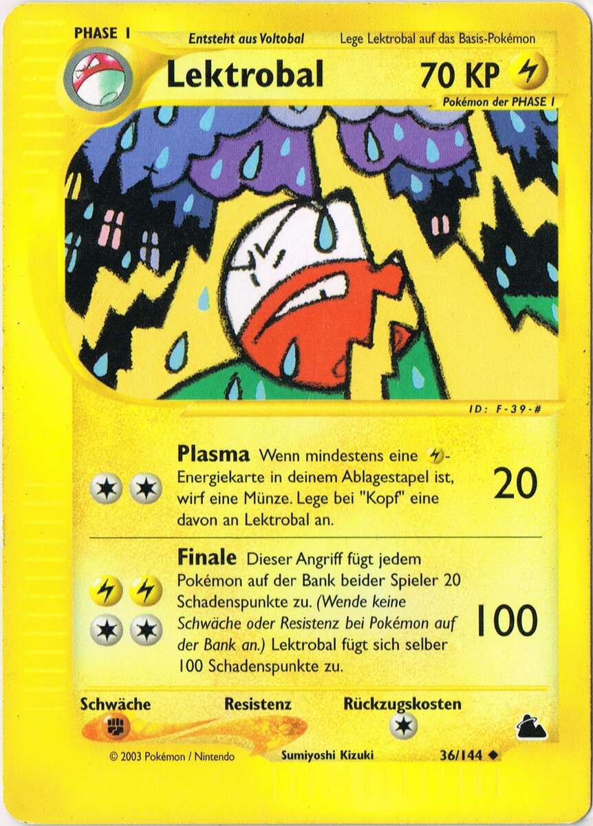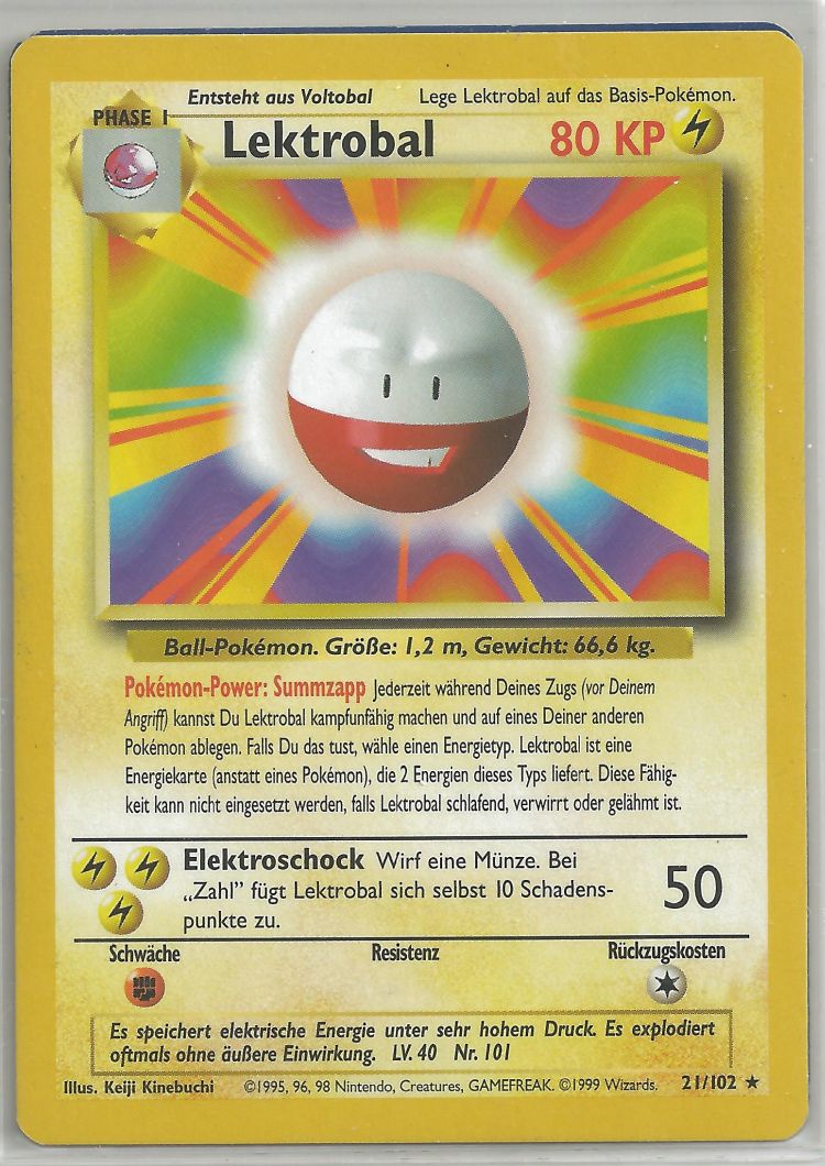 - G Dieses Pokémon speichert Energie in seinem Körper. Die geringste Erschütterung lässt es explodieren.