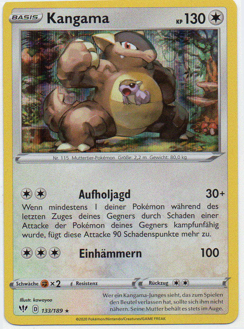 - SWRI Obwohl es sein Junges im Beutel trägt, bewegt sich dieses Pokémon äußerst leichtfüßig. Gegner schreckt Kangama mit blitzschnellen Schlägen ab.