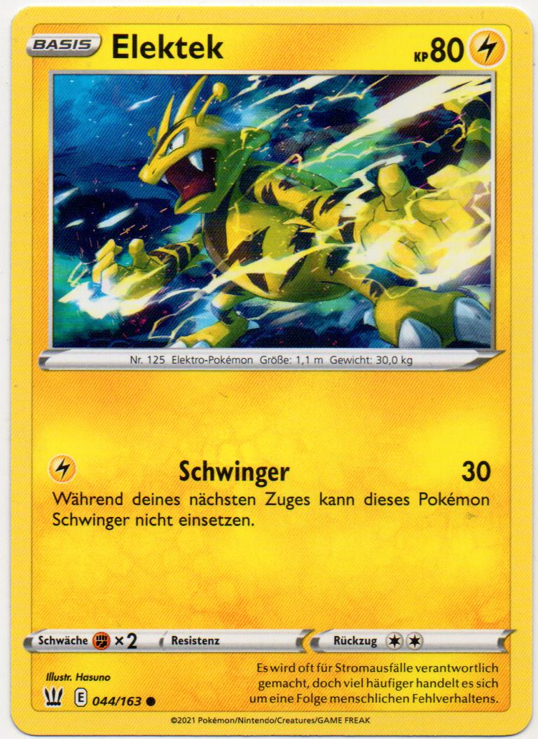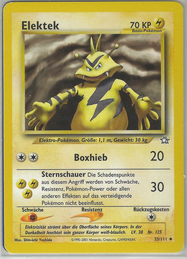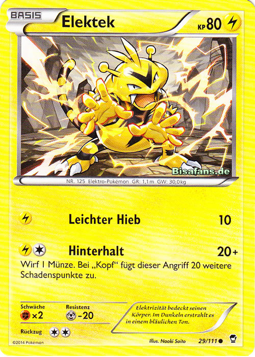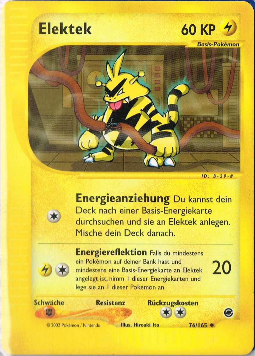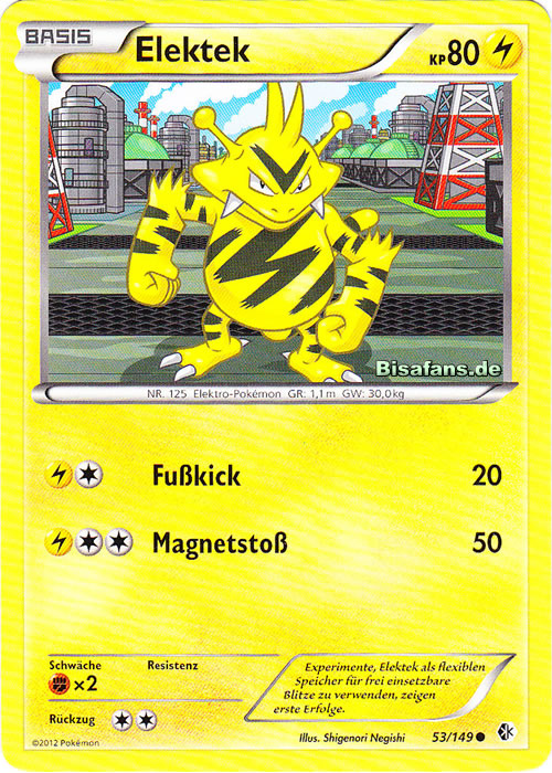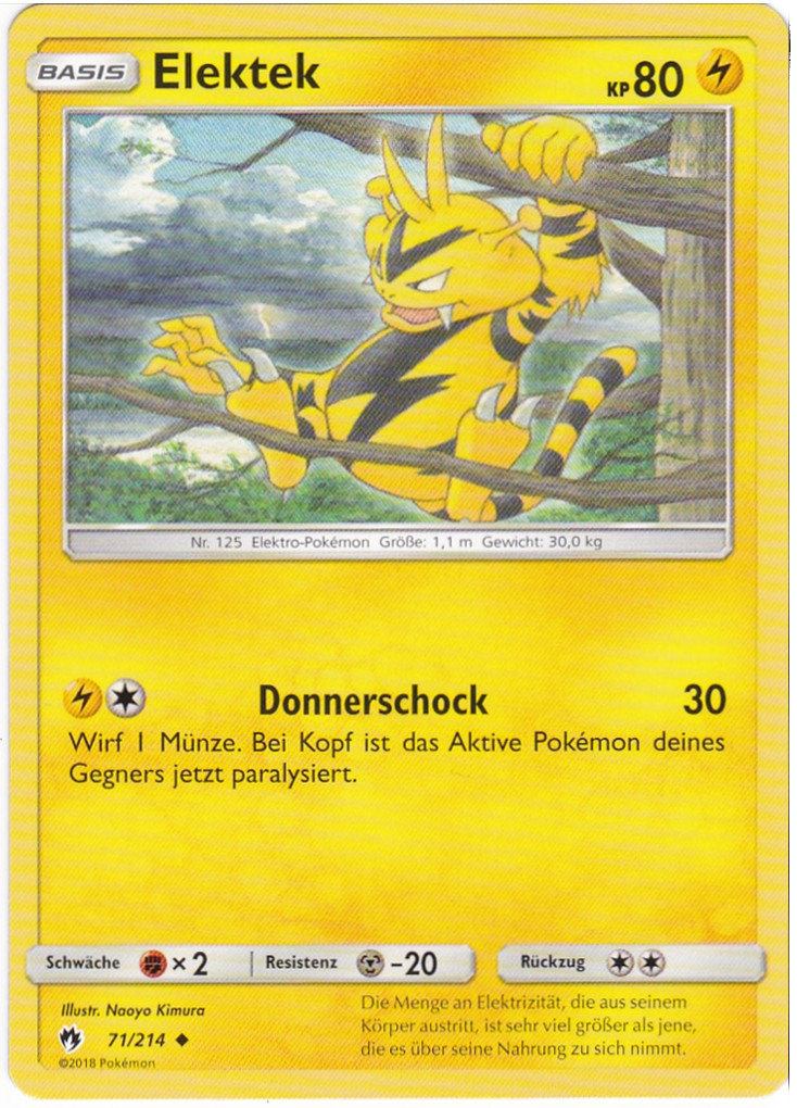 - RS Bei Gewitter konkurrieren diese PKMN, wie viele Spannungseinheiten sie erreichen, wenn sie vom Blitz getroffen werden. Einige Ortschaften benutzen ELEKTEK an Stelle von Blitzableitern.