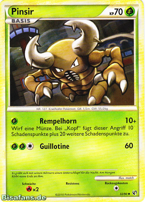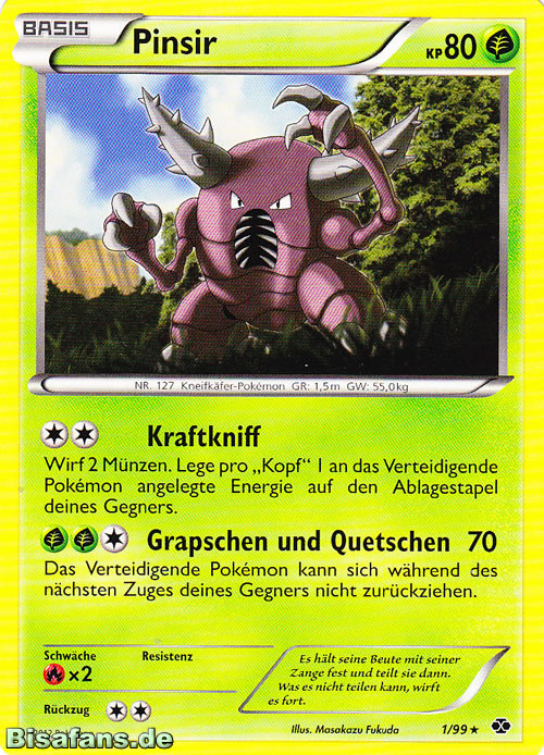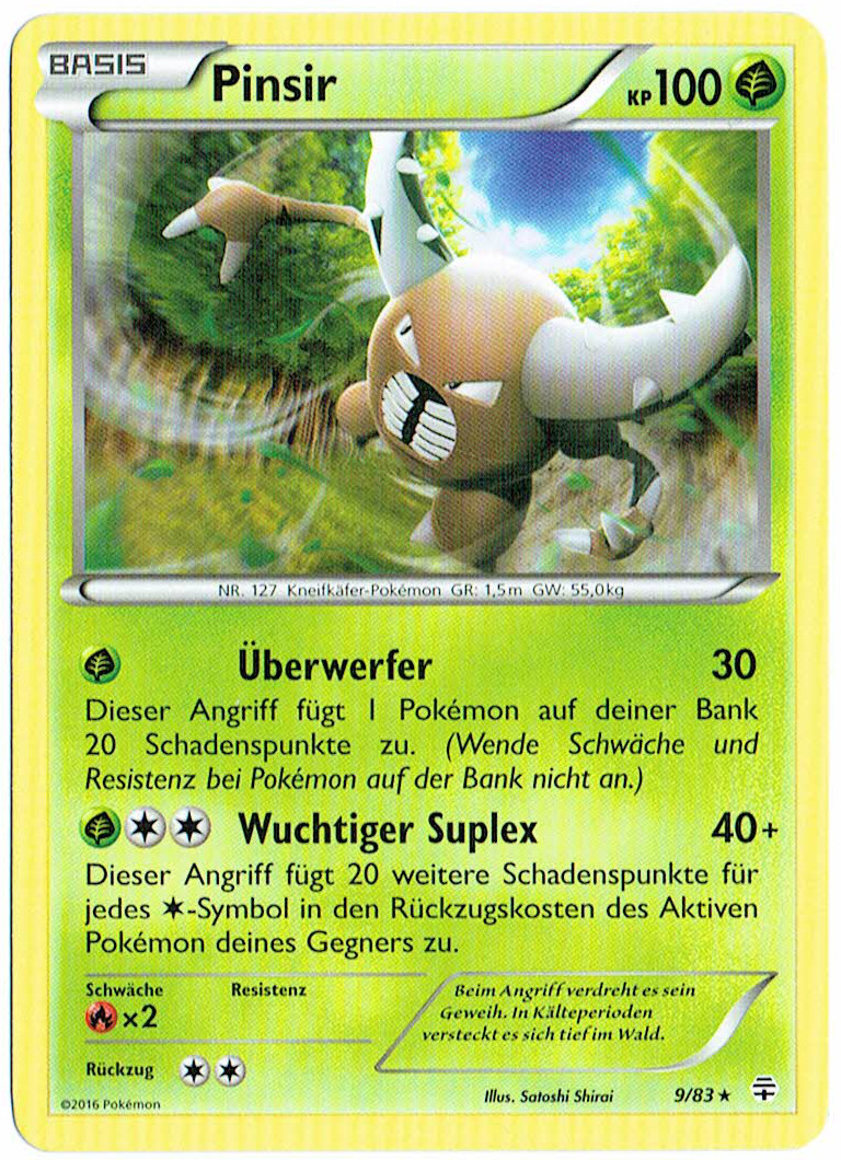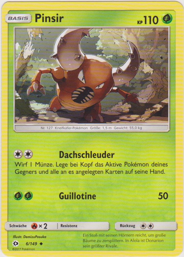 - G Dieses Pokémon bevorzugt einen warmen Lebensraum. Pinsir attackiert Gegner mit seiner riesigen Schere.