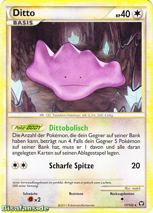 - K Trifft es auf ein anderes Ditto, bewegt es sich schneller als gewöhnlich, um es exakt nachzuahmen.